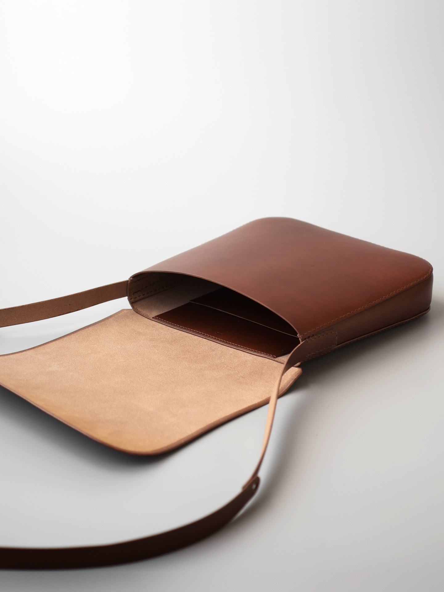 フランスアルプス育ちでイタリア鞣しの植物タンニン鞣し牛革と、リネン糸の手縫いでつくったショルダーバッグです。内と外にポケットが付いたシンプルなカバンです。