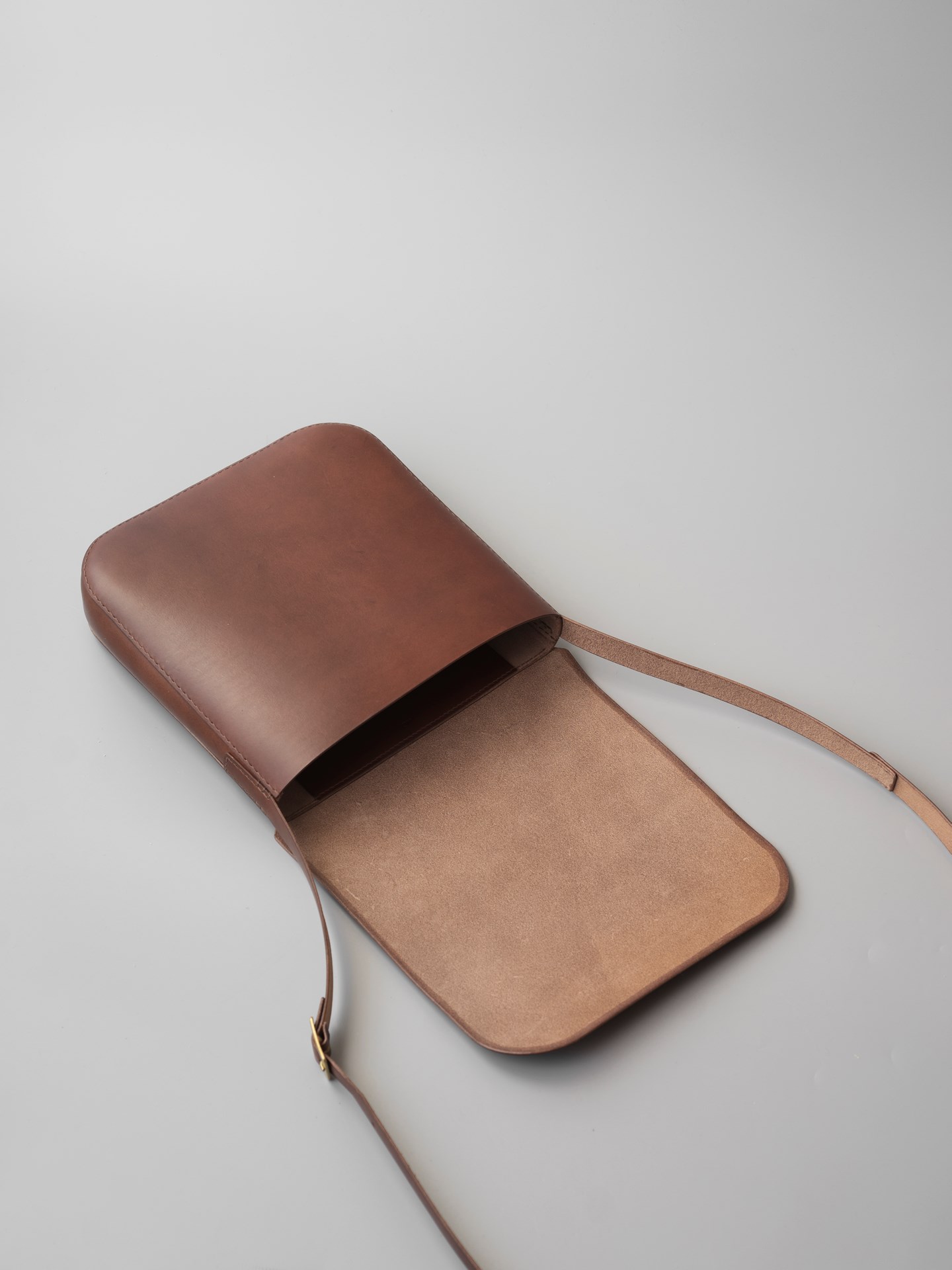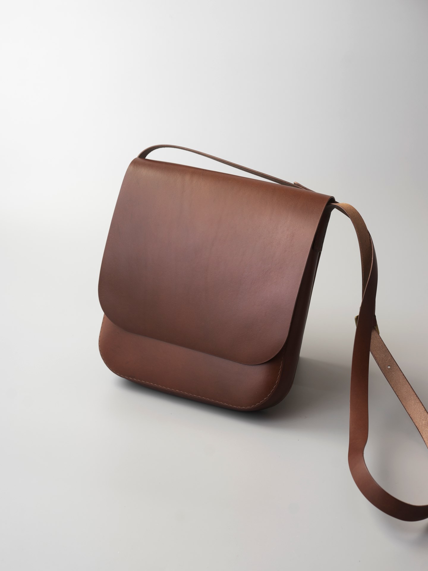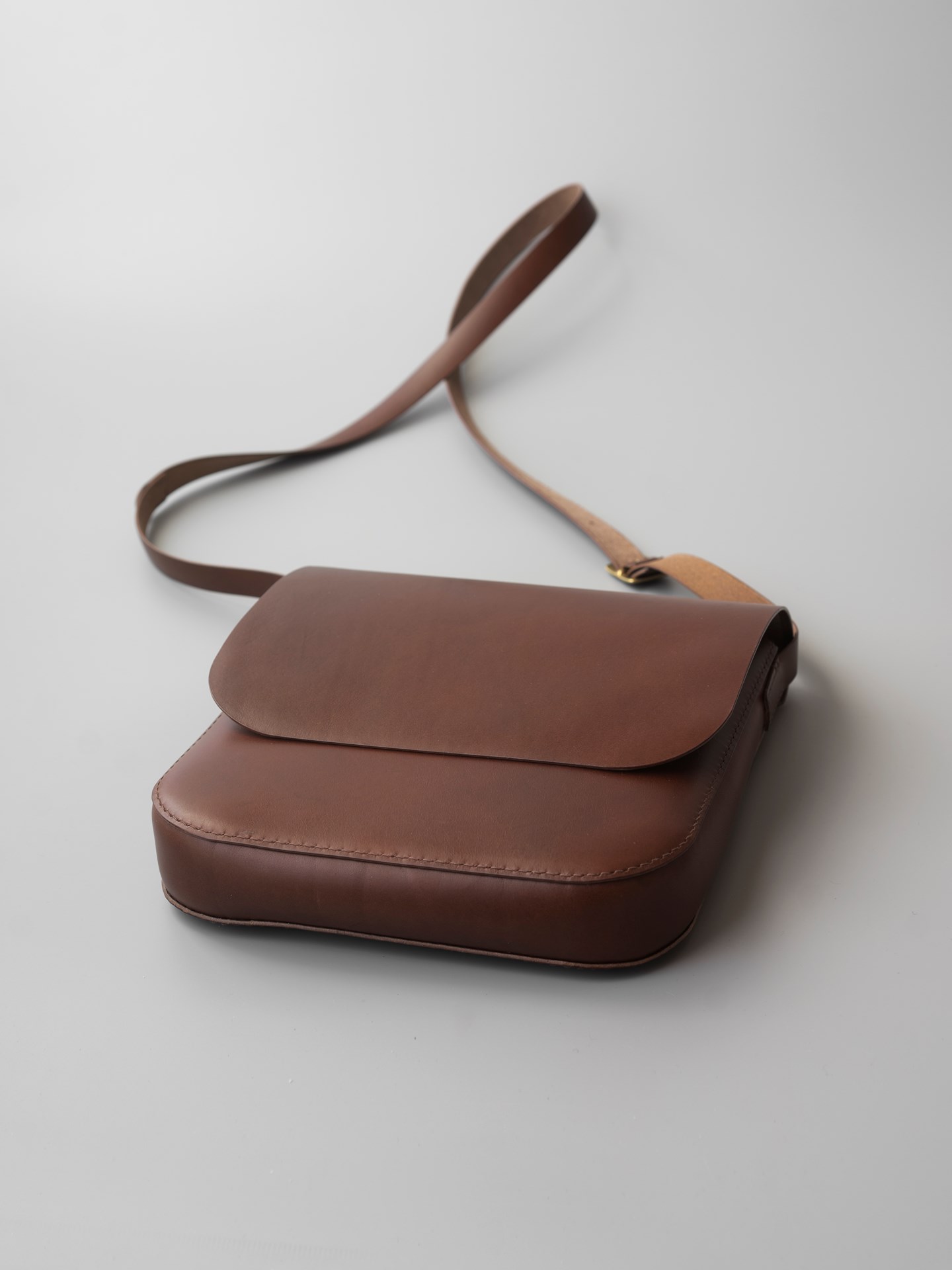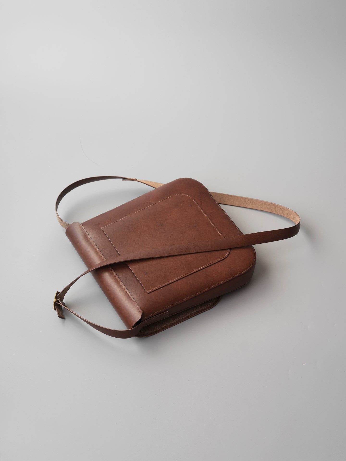 フランスアルプス育ちでイタリア鞣しの植物タンニン鞣し牛革と、リネン糸の手縫いでつくったショルダーバッグです。内と外にポケットが付いたシンプルなカバンです。